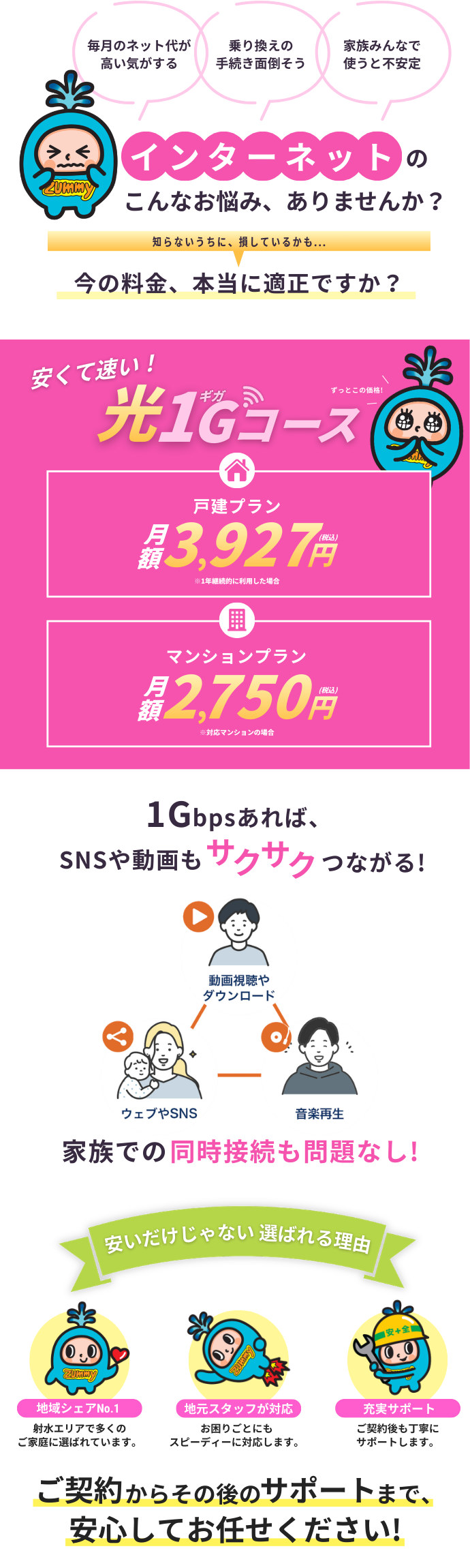 月額料金に含まれているため、追加でプロバイダ料金をお支払いいただく必要はございません。
