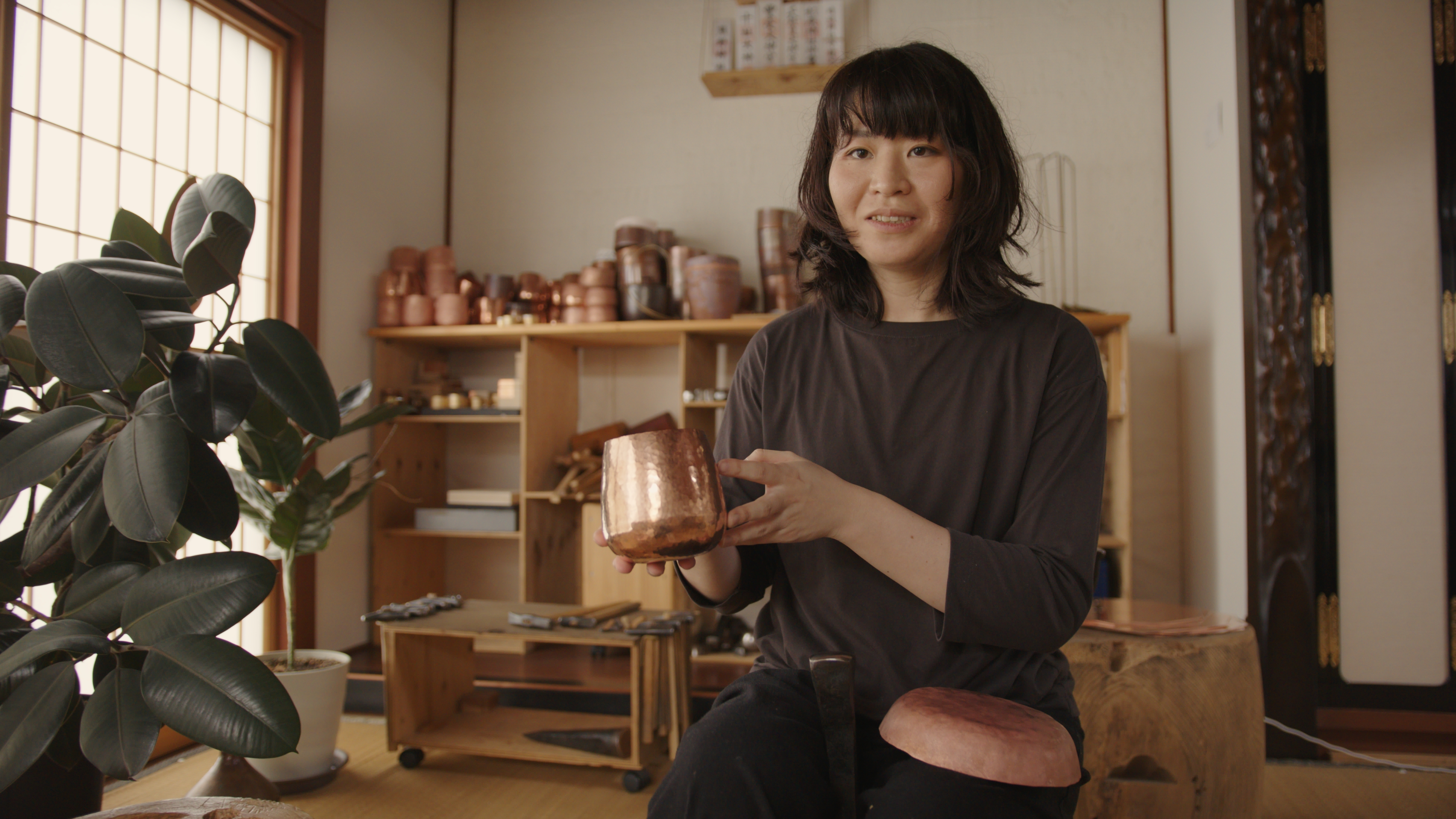 金工作家・池田晴美は、金属板を手で叩いて形にする「鍛金」で作品を制作している。
