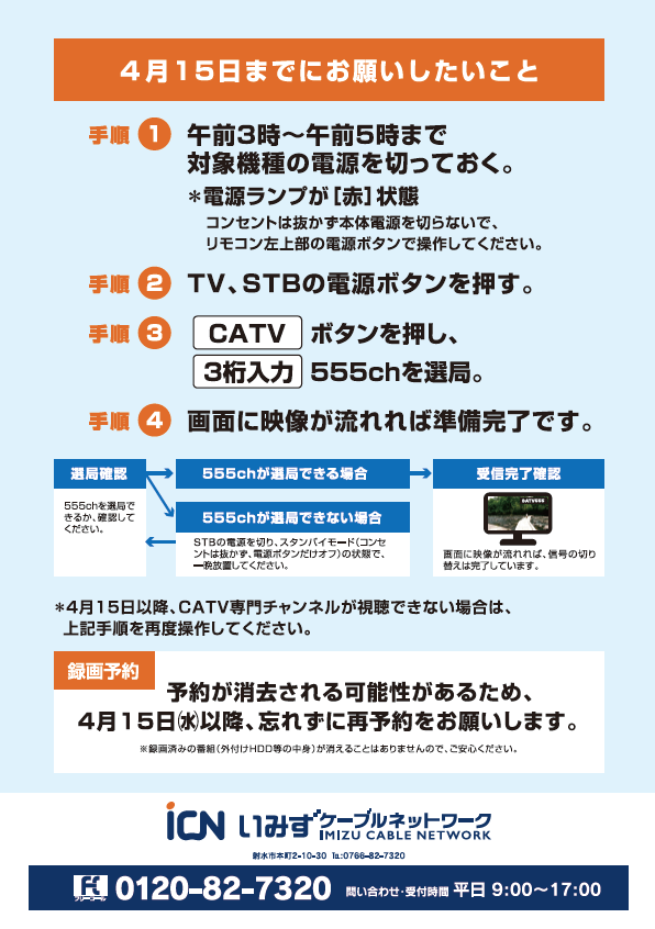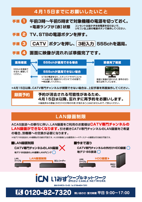 CATV専門チャンネル放送方式(ACAS)への切り替えに伴う再設定のお願い